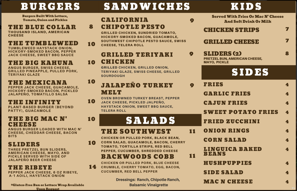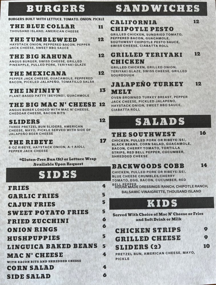 The atmosphere is lively yet cozy, making it perfect for families, groups, or a casual dinner date. The outdoor seating, complete with heated areas, allows guests to enjoy their meals in comfort. Don't miss out on the happy hour specials that make this spot even more inviting. With options for catering and a welcoming policy for furry friends, Backwoods Burgers is truly a gem for burger lovers and a community hub. Come experience the flavors that have locals raving!